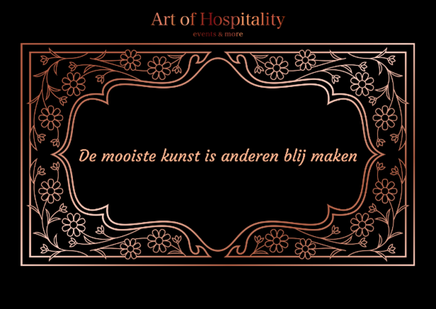 Gastvrijheid is zoveel meer dan een warm welkom. Het is dé manier om verbinding te creëren, indruk te maken en je organisatie te laten stralen. Art of Hospitality helpt support professionals en bedrijven om gastvrijheid als krachtige marketingtool in te zetten. Want wanneer mensen zich écht welkom voelen, blijven ze langer, komen ze terug en vertellen ze anderen over hun ervaring.